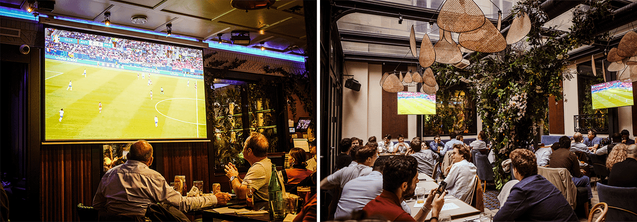 Tous les grands matchs sportifs sont diffusés dans notre bar proche des Champs-Élysées ! Tour de France, Super Bowl, Wimbledon, Coupe du Monde de FIFA, Roland-Garros, les Six Nations, etc.